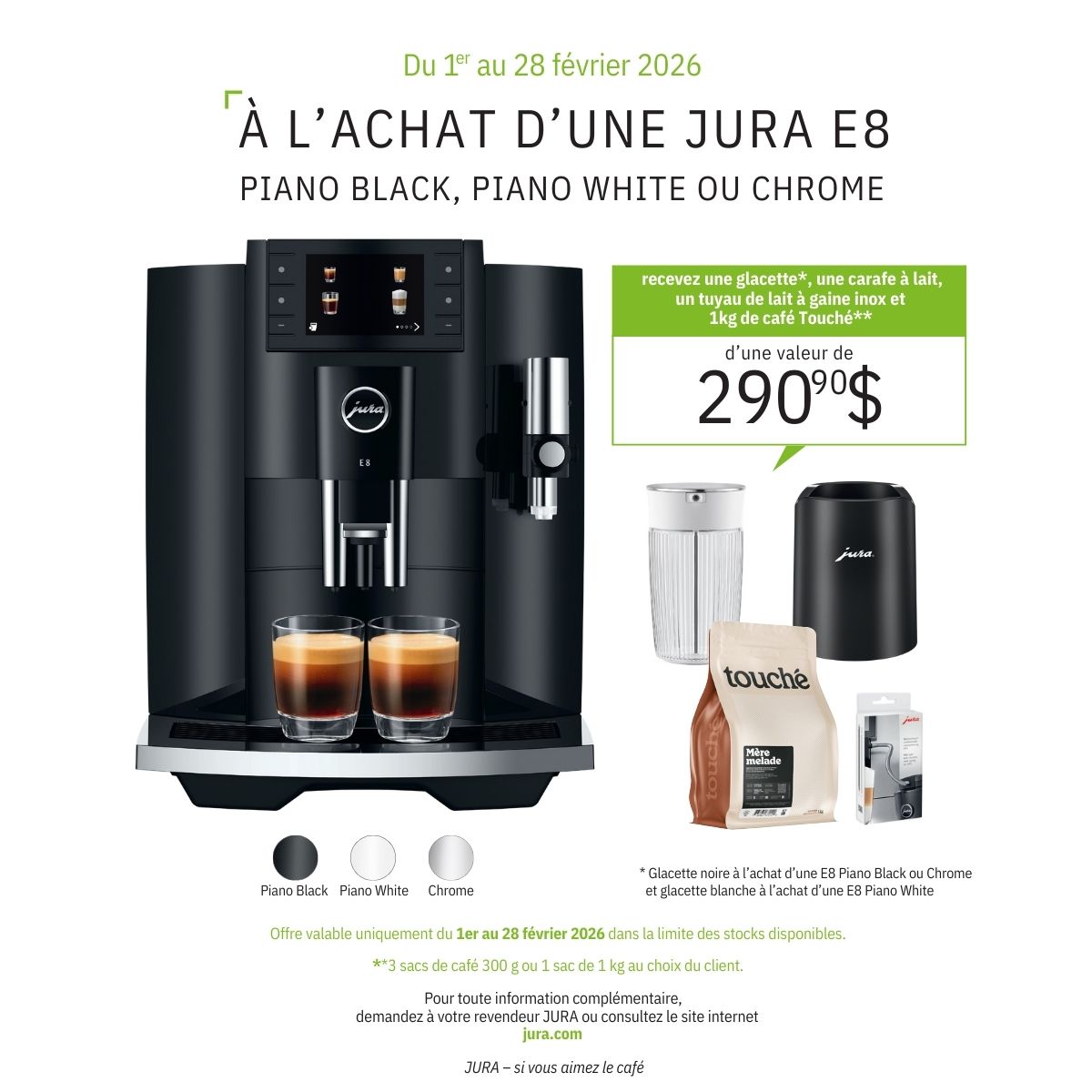 Découvrez la nouvelle E8 de JURA, une machine à café au design moderne et élancé qui allie simplicité d’utilisation et technologie de pointe pour préparer par simple pression d’une touche un vaste choix de 17 spécialités et classiques de café d’une qualité digne des meilleurs bars.